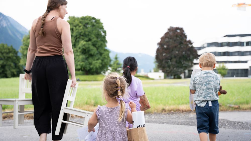 Salome Abegglen betritt den Seniorenpark Weissenau. Bei sich hat sie drei Kinder: Selina, Leo und Norah. Jedes Kind trägt einen kleinen Papiersack, Leo hat noch seinen Stofffuchs unter den Arm geklemmt. Das Quartett hält auf den rechts gelegenen Saal nach dem Empfang zu, da ertönt von hinten die piepsige Stimme einer Frau: «Hallo Leo, du lieber Schatz, schön, bist du wieder da». Auf dem Gesicht der betagten Dame macht sich ein Strahlen breit. Der vierjährige Leo lächelt verschämt zurück und zusammen gehen sie in den Raum, wo ein Kreis aus knapp 20 Stühlen auf sie wartet.