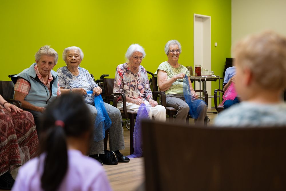 Es ist Donnerstagmorgen, um Viertel vor zehn Uhr findet die wöchentliche Aktivität «Musik und Spass» für die Bewohnerinnen und Bewohner des Seniorenparks statt. Alle paar Wochen nehmen auch eine knappe Handvoll Kinder aus der benachbarten Kita «Sunnestube» und ihre Betreuerin daran teil. Salome Abegglen ist Co-Leiterin der Kita und hat den Anstoss für das Mitwirken der Kinder gegeben. Im Rahmen ihrer Diplomarbeit als Kindheitspädagogin HF suchte sie nach einer Möglichkeit, Raum für Begegnungen zwischen alten und jungen Menschen zu schaffen. Der Seniorenpark bot Hand, und seit dem Winter 2023/24 gehören die Besuche der Kita fix zum Aktivitätenprogramm für die Bewohnerinnen und Bewohner.