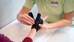 Ihr gegenüber hat Michelle Müller Platz genommen. Die Ergotherapeutin zieht der Patientin die Wachsschicht nach kurzer Einwirkungszeit von der Hand und massiert mit einem Vibrationsgerät das Gewebe rund um den Daumen. Rosmarie Hürzeler leidet an Rhizarthrose, einem Verschleiss von Knorpel des Daumensattelgelenks, der zu schmerzhaften Entzündungen führt. Vor vier Wochen hat die 72-Jährige ihre Hand operieren lassen. In der heutigen Therapiestunde bringt Michelle Müller der Patientin bei, wie sie mit Training die Hand reaktivieren und die Beweglichkeit wiedererlangen kann. Bei einer Übung, die ihr spontan zusagt, umfasst Rosmarie Hürzeler mit der Hand einen Tennisball und muss mit dem Daumen über die Oberfläche streichen.